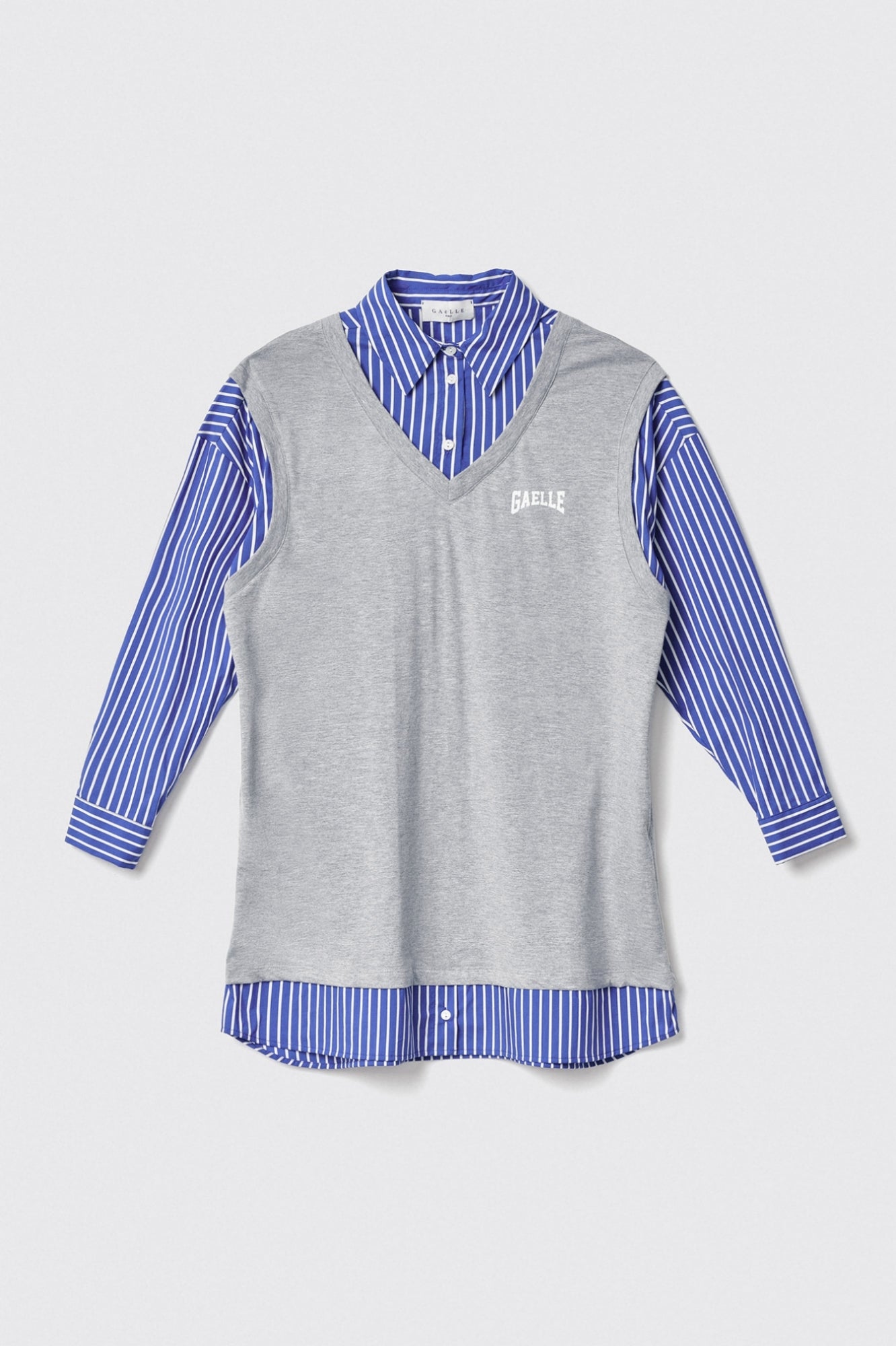 Abito corto bimaterico • Grigio melange/azzuro scuro