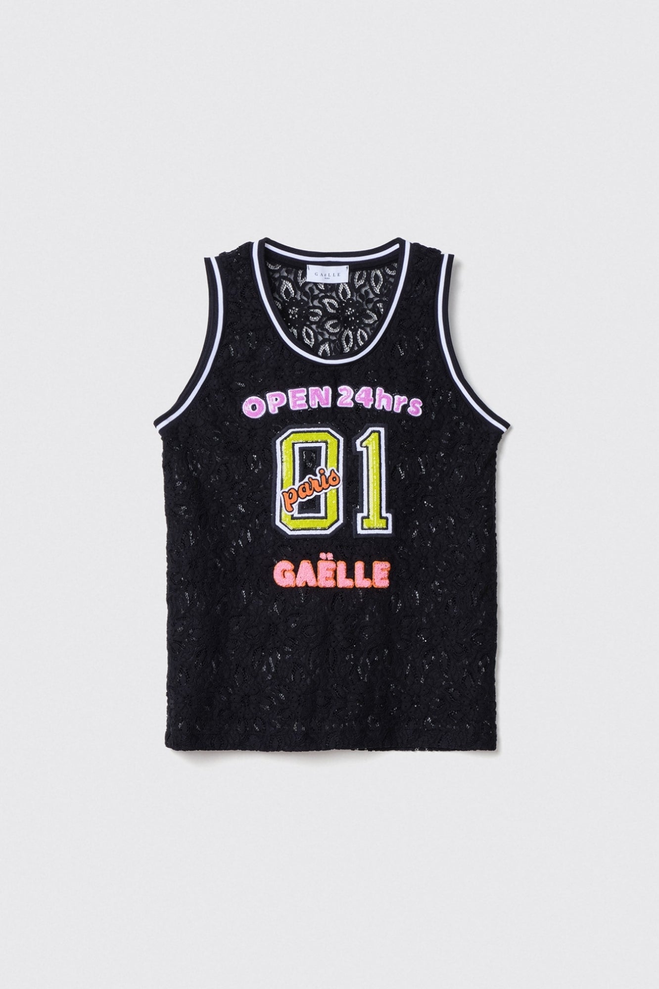 Canotta in pizzo con smanicato e ricamo - Gaëlle
