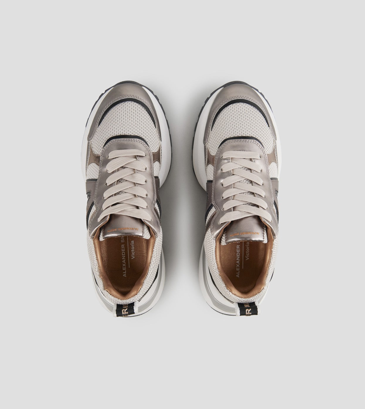 Il nuovo modello Victoria di Alexander Smith nasce per accompagnare ogni passo con grinta ed eleganza. Linee decise, dettagli metallici e una suola bold definiscono una sneaker dallo spirito contemporaneo, perfetta per chi vuole distinguersi. Victoria è l’equilibrio perfetto tra performance urbana e ricercatezza estetica, in questa variante in mesh argento e dettagli specchio.